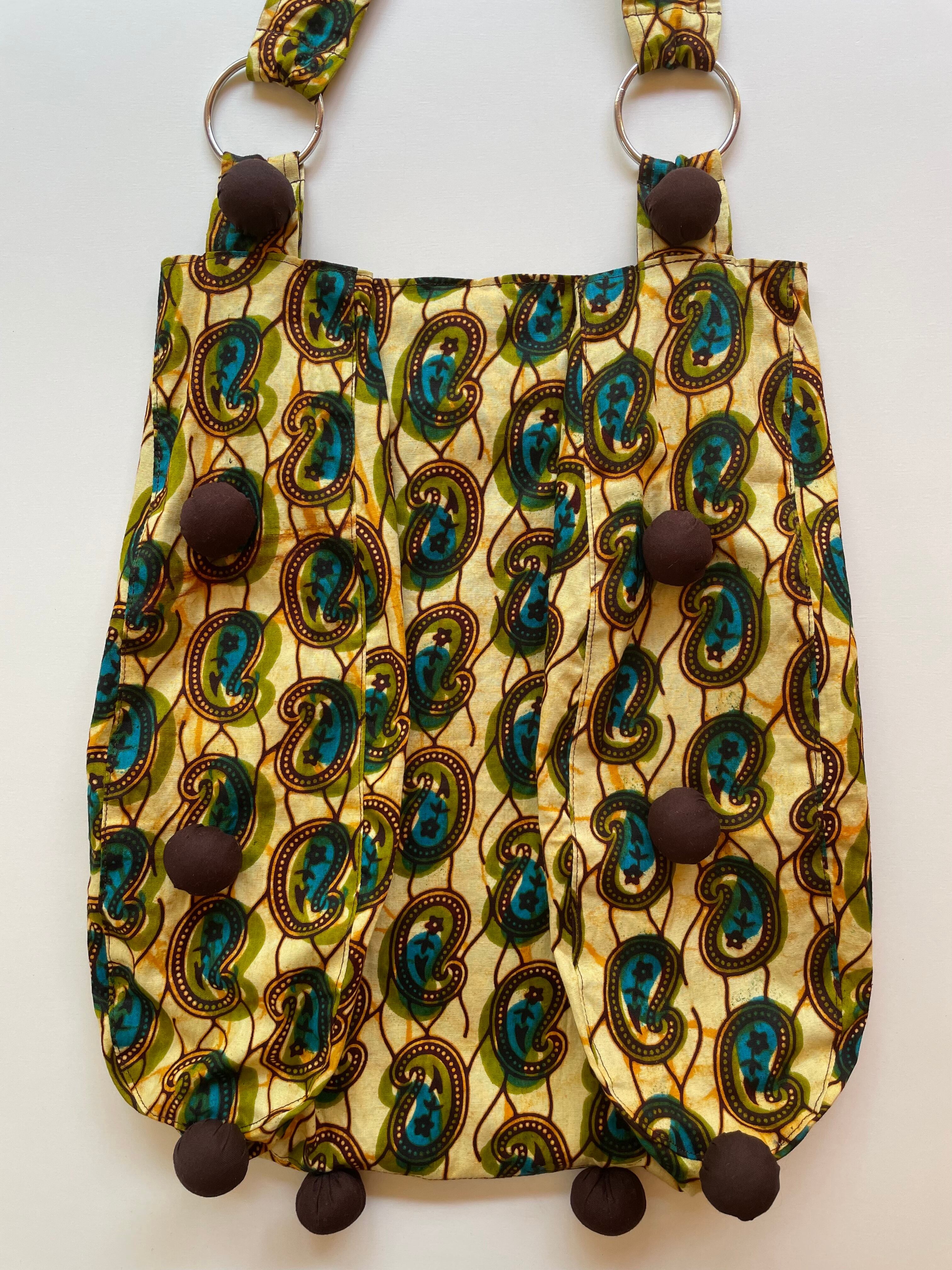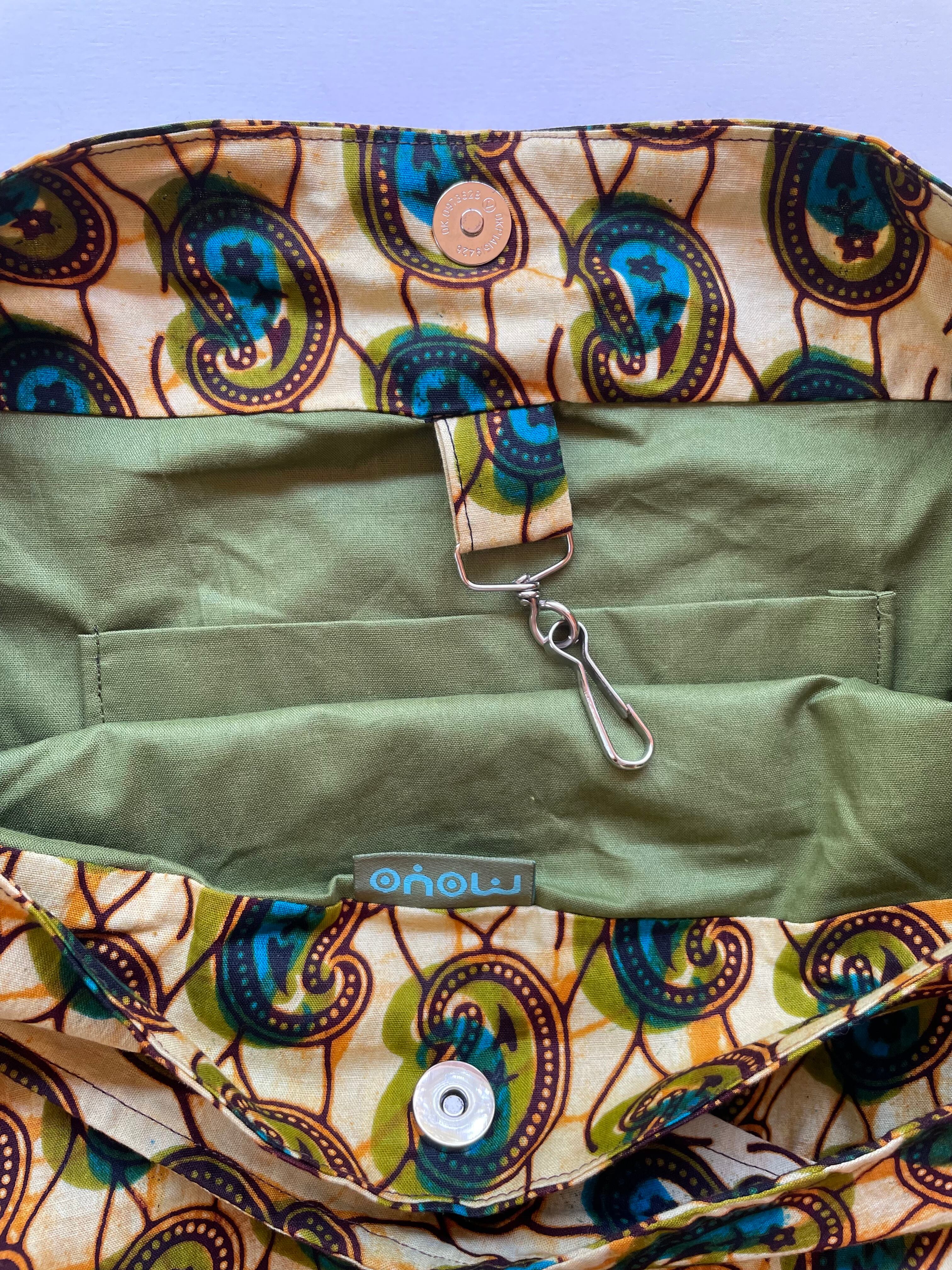 「キテンゲ」とは、アフリカの伝統的な華やかなプリント生地のこと。その個性的な色とりどりの柄が施された生地を使用し、全て手作りしています。温かみを感じることができ、1つ、1つ、柄の出方が変わるため、どのバッグも世界に一つしかないオリジナルバッグとなっています。
