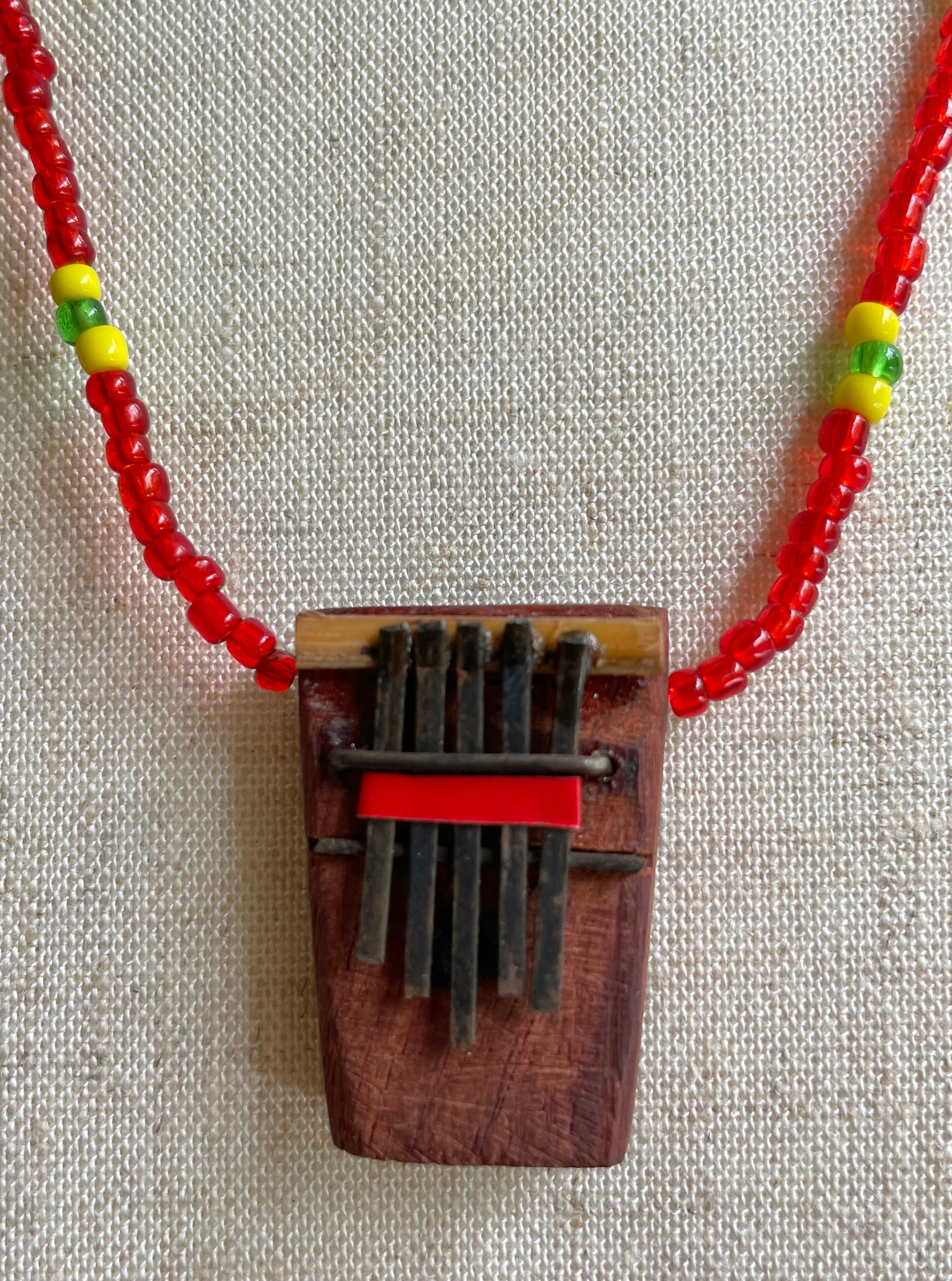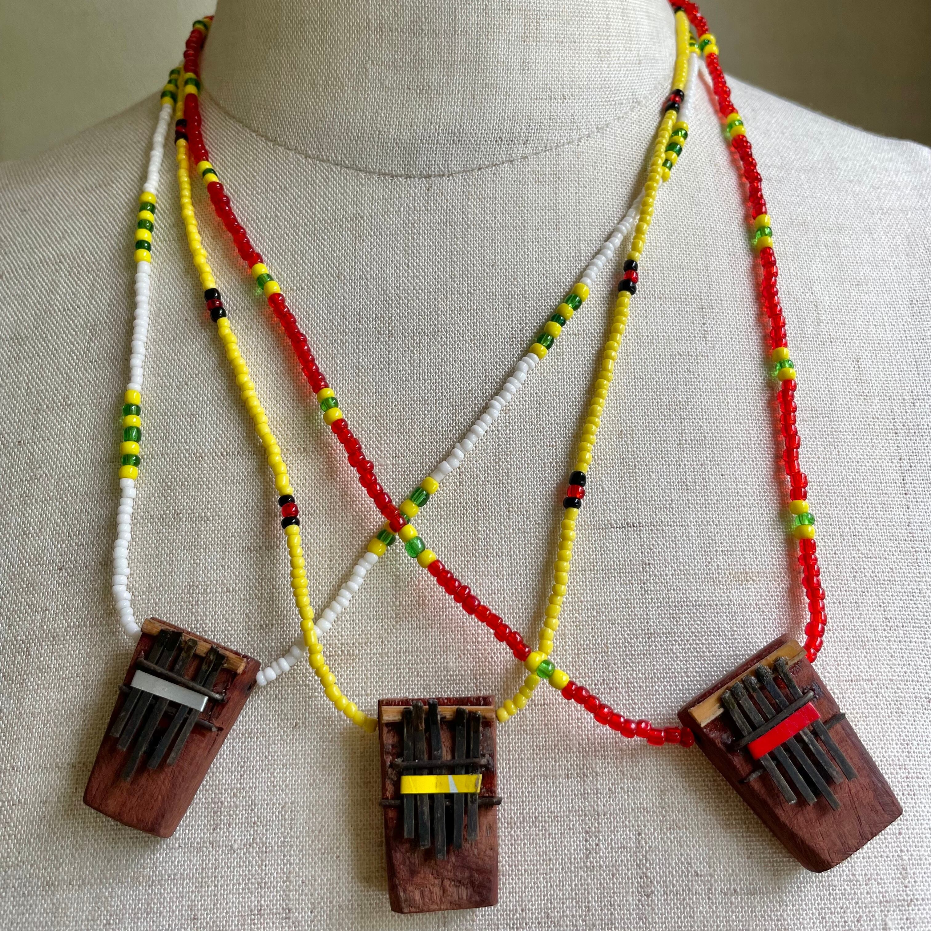 彼らが使う楽器イリンバ(親指ピアノ)をモチーフにした可愛いビーズネックレス、型がある訳ではなく1つ1つ手で作成している為、同じ物はありません。もちろん製作者もゴゴ族の男性です。そのため形やネックレスの長さも若干の違いが生じる場合がございますが、ご了承ください。オシャレな1点モノを探してる貴方に!