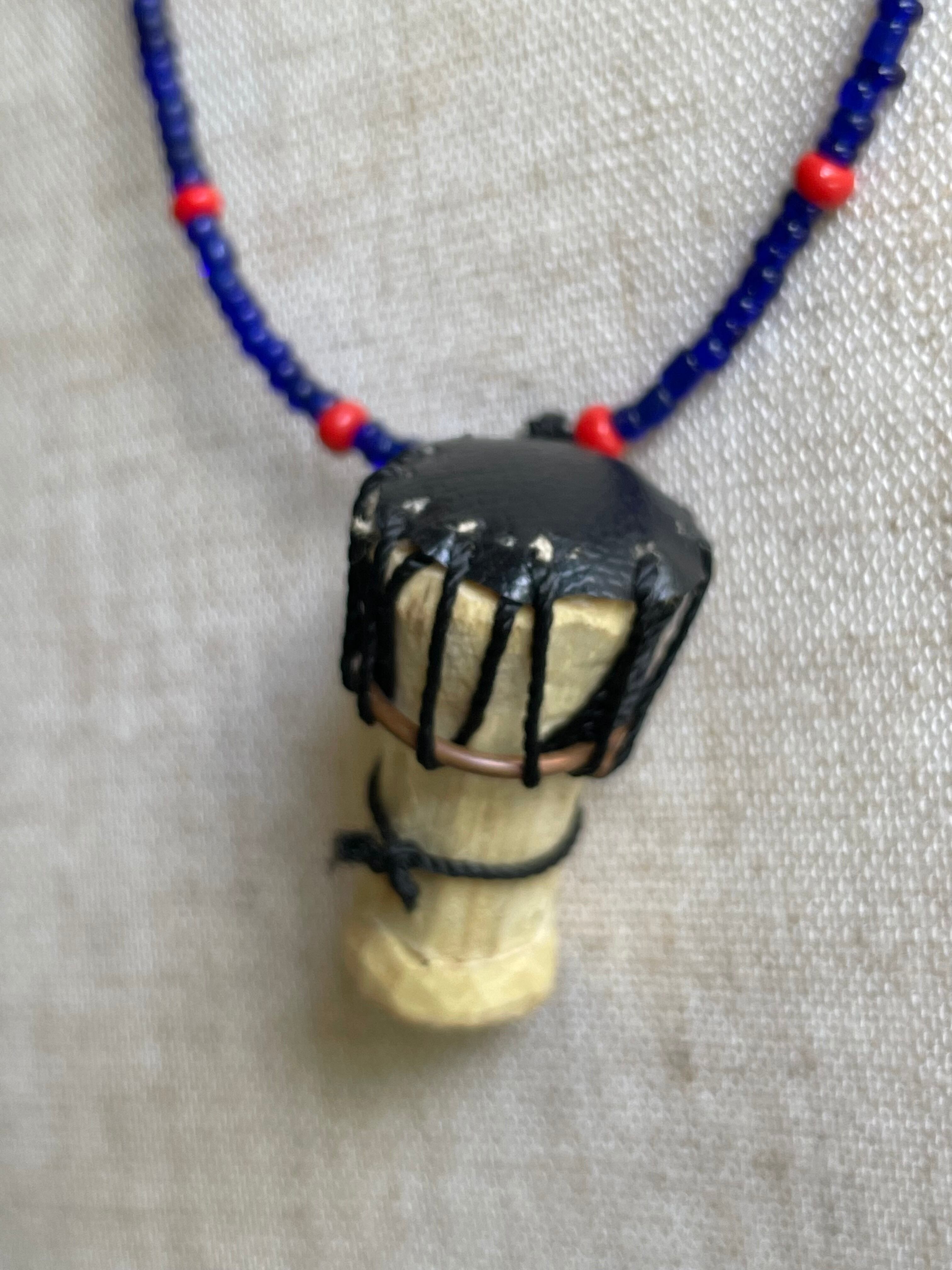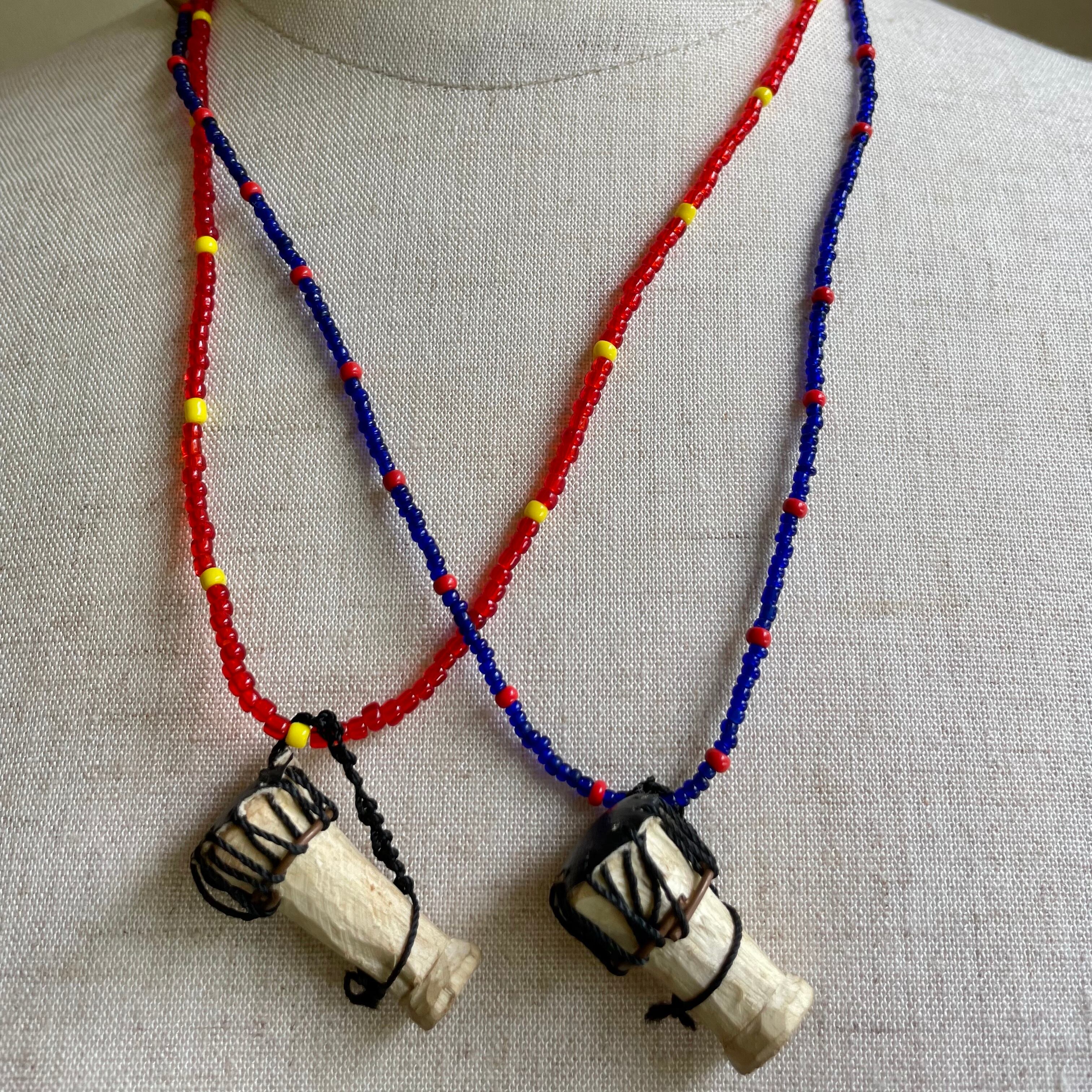 彼らがパフォーマンスで使う楽器ンゴマ(打楽器、太鼓)をモチーフにした可愛いビーズネックレスです。型などは無く、ゴゴ族の男性が1つ1つ手で作成している為、同じ物はありません。そのため、若干の違いが生じる場合がございますが、ご了承ください。オシャレな1点モノを探してる貴方に!
