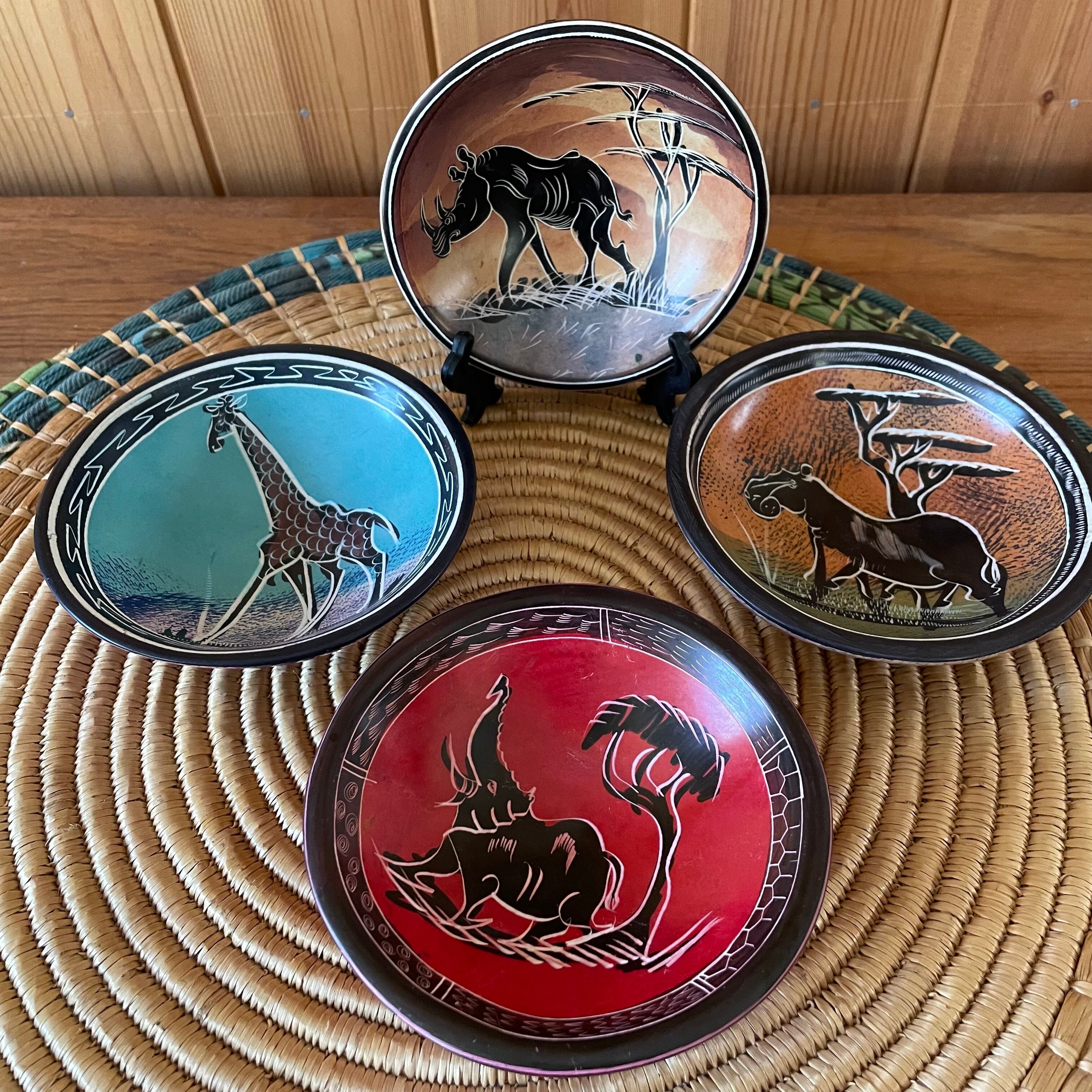 ソープストーン(滑石)と言う石鹸のような、しっとりとした質感の石を加工し、動物の絵を手描きした飾り皿です。飾り皿ですが、小さい器なのでアクセサリーの一時置き場などにも。